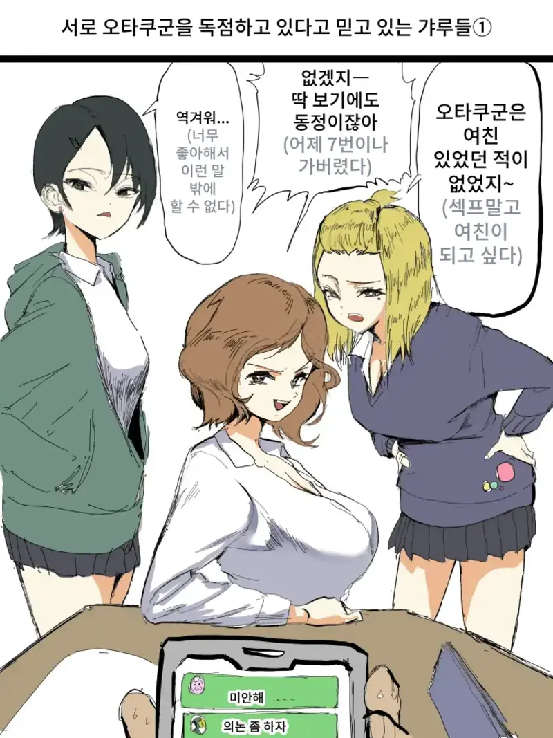 [朝仁寝ルノ] お互いにオタク君を独占していると思い込んでいるギャル達 1-5 [韓国翻訳]