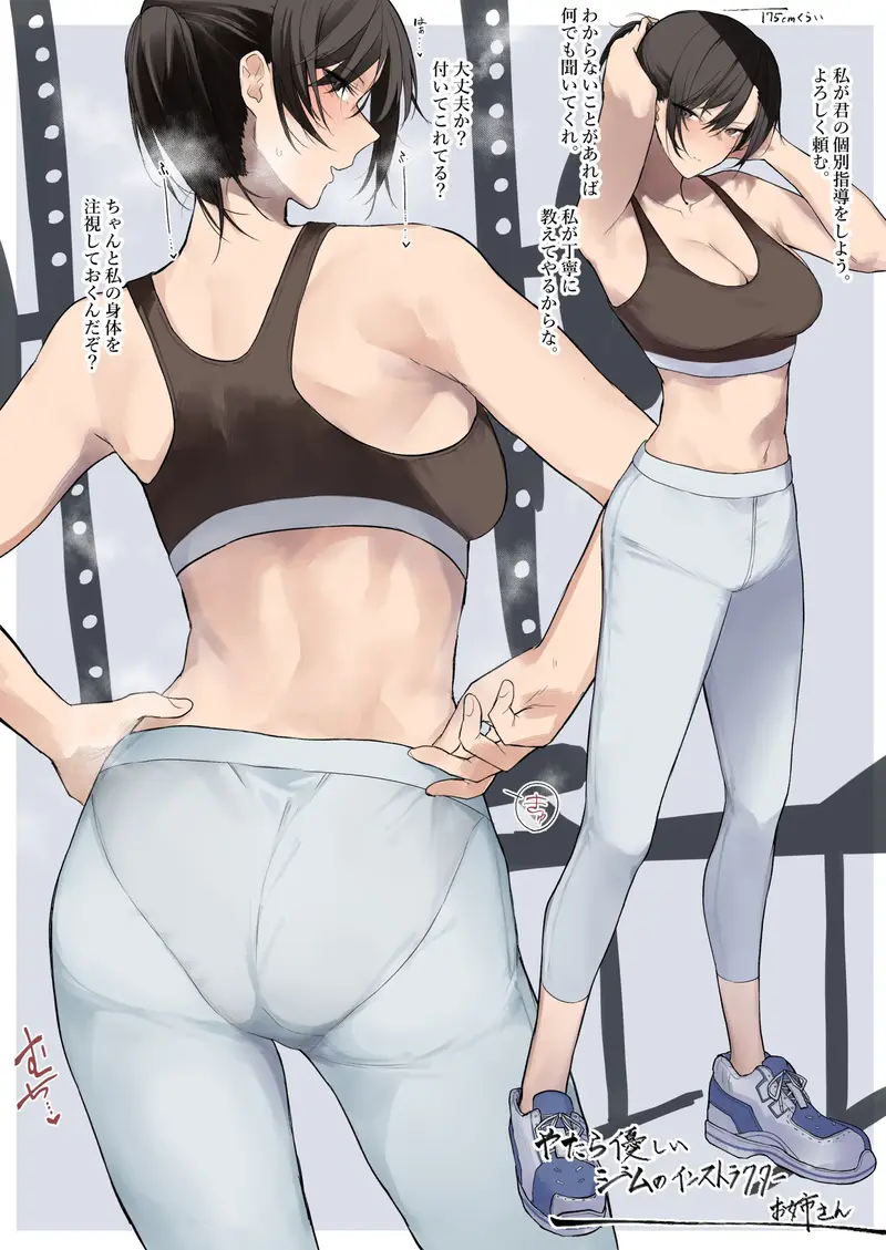 [おきょう] ジムの優しいインストラクターのお姉さんが僕のことを気にかけてくれる絵