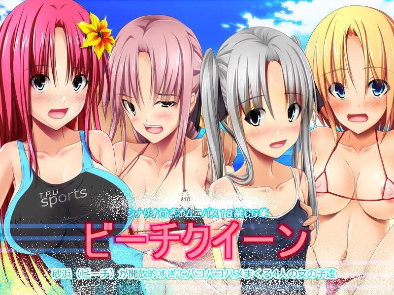 [しかくとさんかく] ビーチクイーン 砂浜(ビーチ)が開放的すぎてパコパコハメまくる4人の女の子達