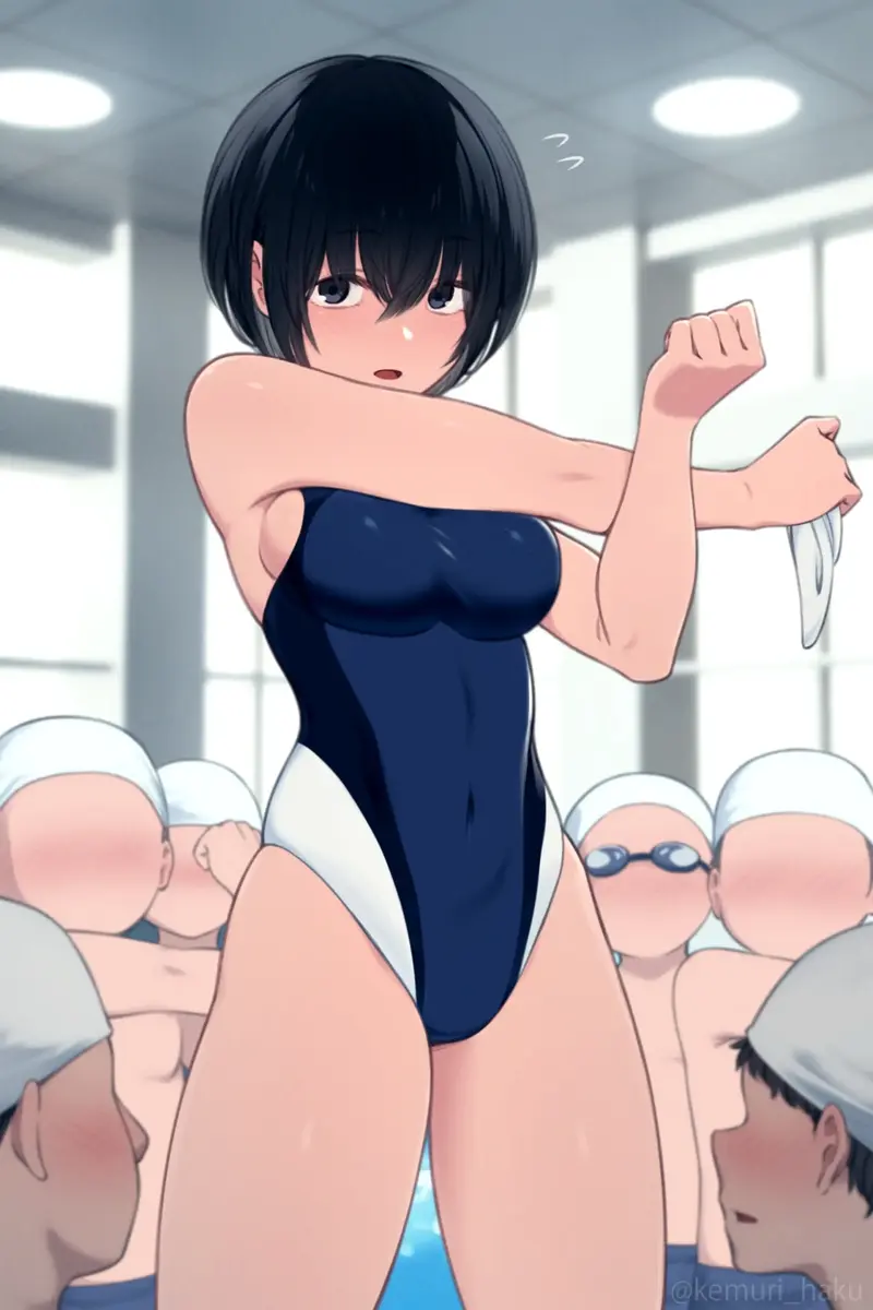 スイミングスクールでバイトすることになった黒髪ショートちゃん