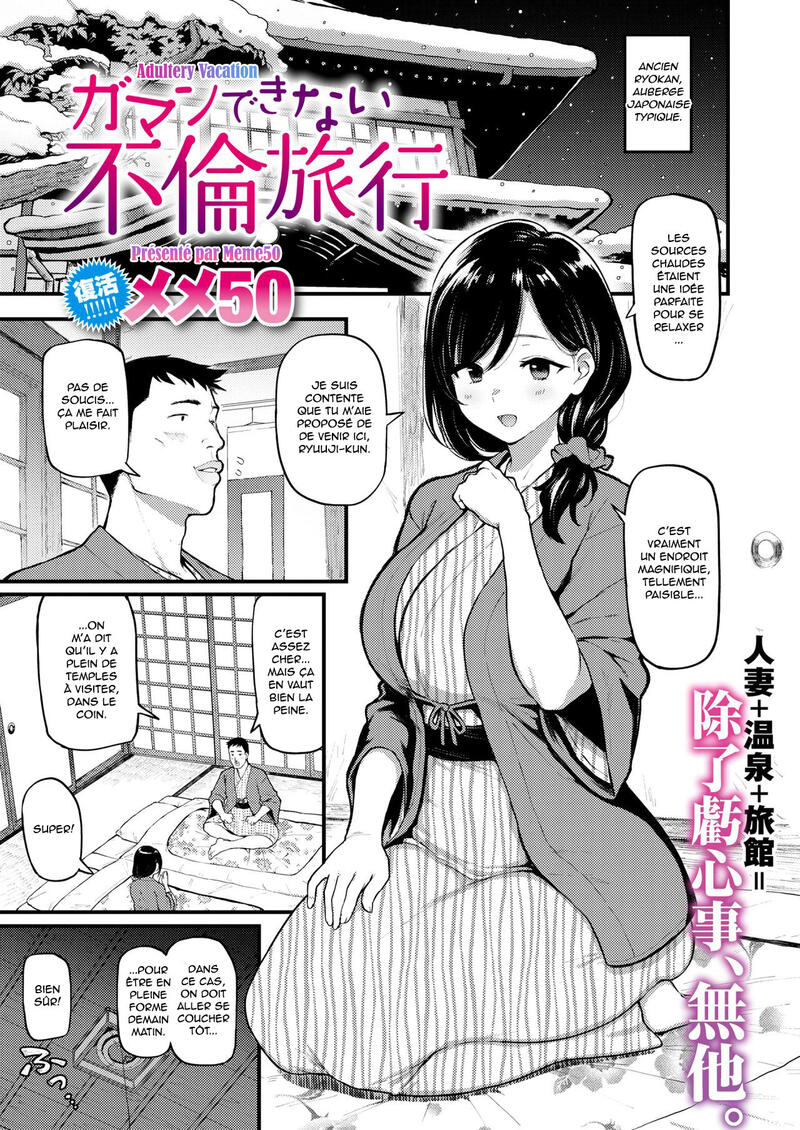 [Meme50] Gaman Dekinai Furin Ryokou | Adultery Vacation (COMIC Shitsurakuten 2021-03) [French] [Hentai-trad-fr] [Digital]